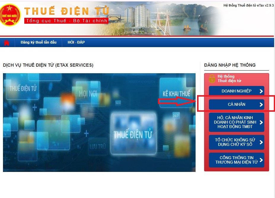 - Bước 1: Truy cập website Thuế Điện Tử tại đây => Chọn mục cá nhân