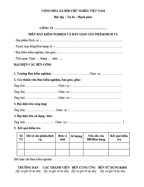 Dưới đây là mẫu biên bản nghiệm thu hàng hóa mới nhất hiện nay: