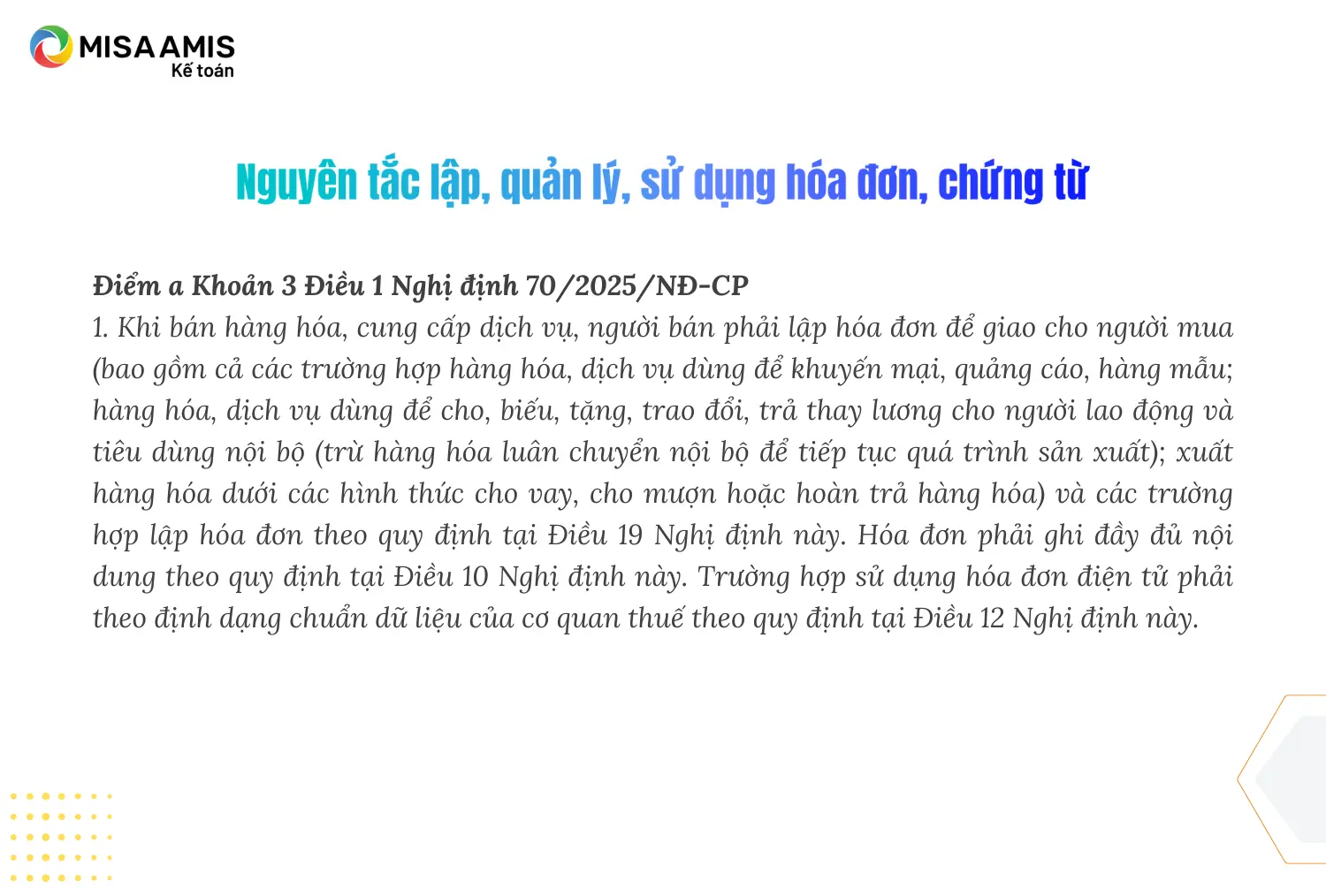 Căn cứ theo Điểm a Khoản 3 Điều 1 Nghị định 70/2025/NĐ-CP sửa đổi khoản 1, điều 4, Nghị định 123/2020/NĐ-CP quy định về Nguyên tắc lập, quản lý, sử dụng hóa đơn, chứng từ như sau: