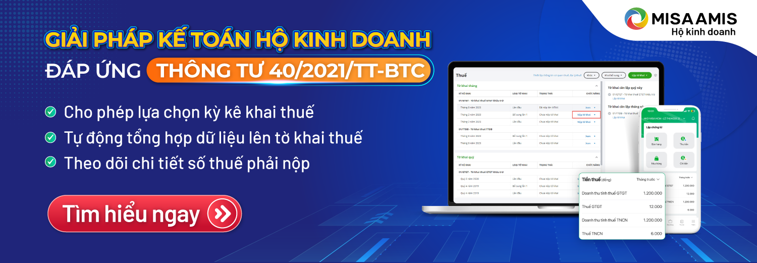 Hộ, cá nhân kinh doanh sẽ phải nộp đầy đủ các loại thuế theo đúng quy định của pháp luật. Để tính, kê khai thuế tiện lợi hơn, hộ cá nhân kinh doanh có thể sử dụng phần mềm kế toán được thiết kế riêng theo chế độ kế toán cho hộ cá thể, tiêu biểu như phần mềm kế toán cho hộ kinh doanh MISA AMIS đáp ứng Thông tư 88 và Thông tư 40, đảm bảo hệ thống chứng từ, hóa đơn và tự động tổng hợp số liệu lên tờ khai thuế ngay trên phần mềm chính xác và tiện lợi.