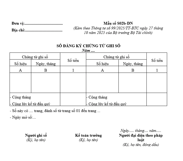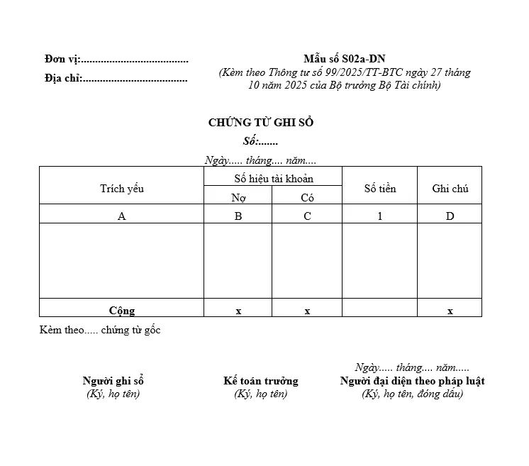 4.1. Chứng từ ghi sổ ban hành theo Thông tư 99/2025/TT-BTC