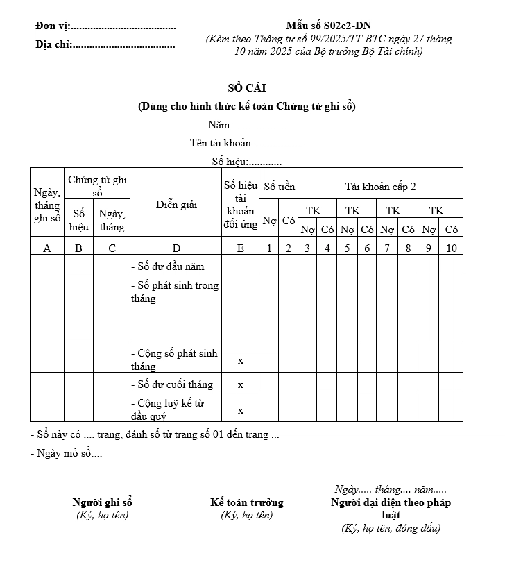 >> Tải ngay mẫu sổ cái mẫu số S02c2- DNN Tại đây