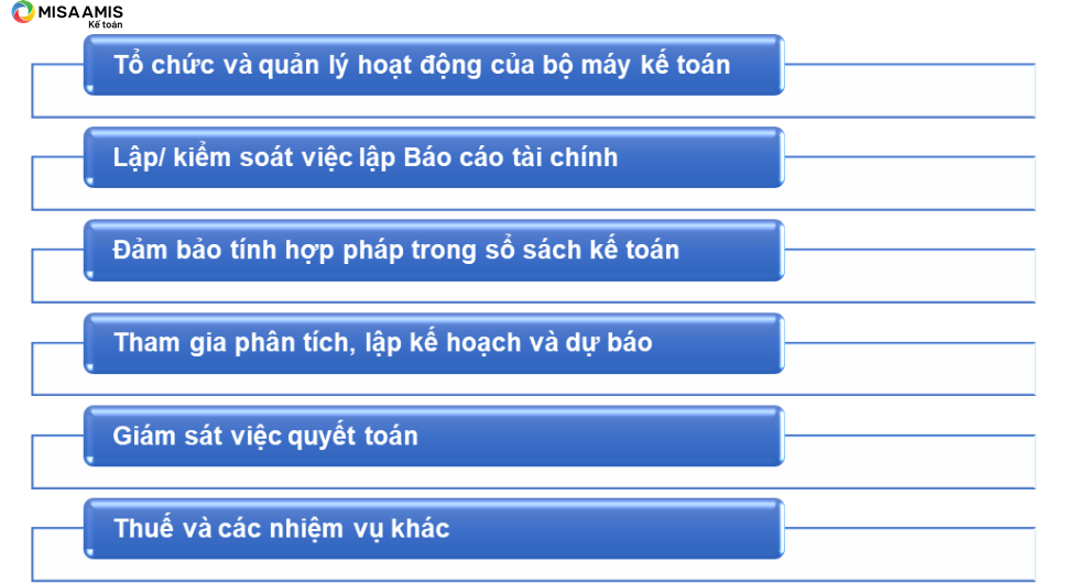 Với vai trò được mô tả như trên thì nhiệm vụ của Kế toán trưởng doanh nghiệp có thể tóm lược như sau: