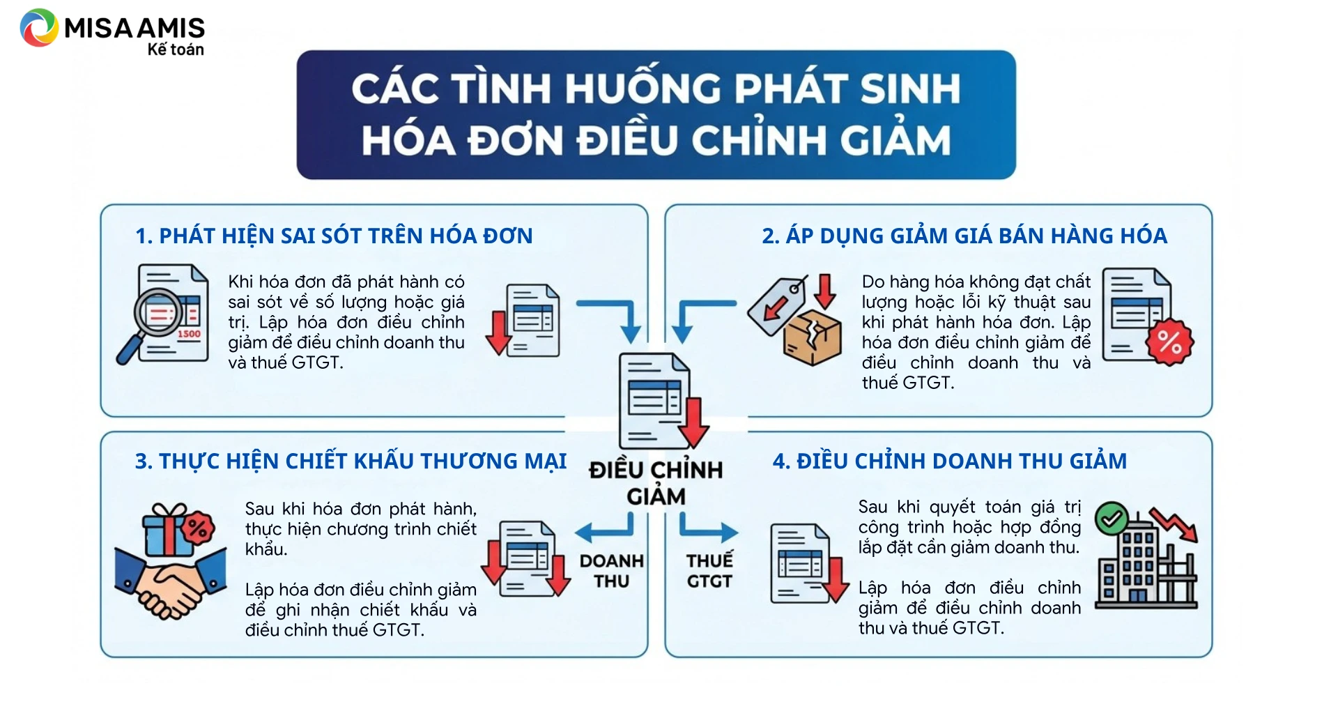 2. Các tình huống phát sinh hóa đơn điều chỉnh giảm