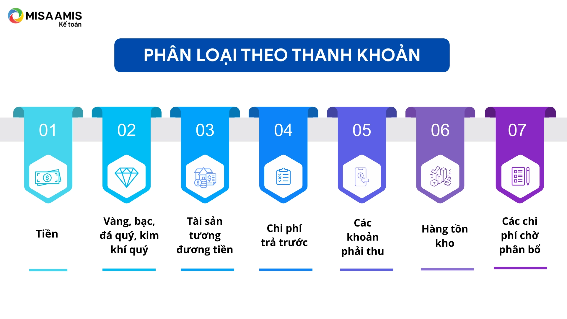 Dưới đây là các nhóm tài sản lưu động sắp xếp từ thanh khoản cao đến thấp: