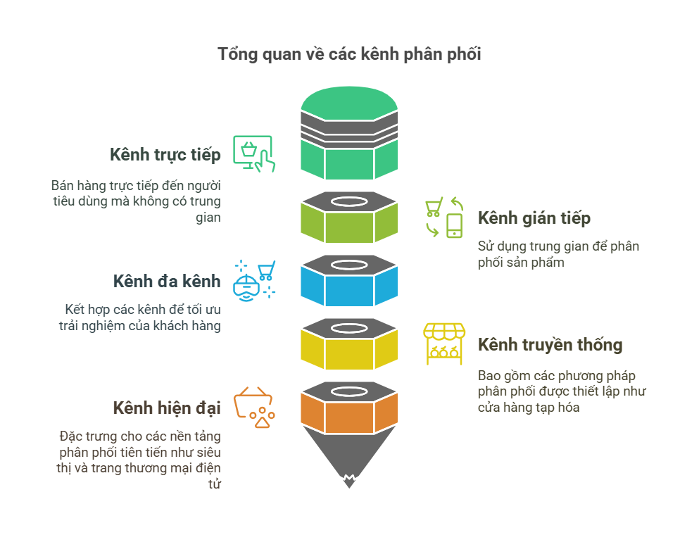 Kênh phân phối (distribution channel) là hệ thống các tổ chức, cá nhân tham gia vào quá trình đưa sản phẩm hoặc dịch vụ từ nhà sản xuất đến tay người tiêu dùng. Kênh phân phối đóng vai trò quan trọng trong chiến lược kinh doanh của doanh nghiệp, giúp mở rộng thị trường, tối ưu chi phí và gia tăng lợi nhuận.