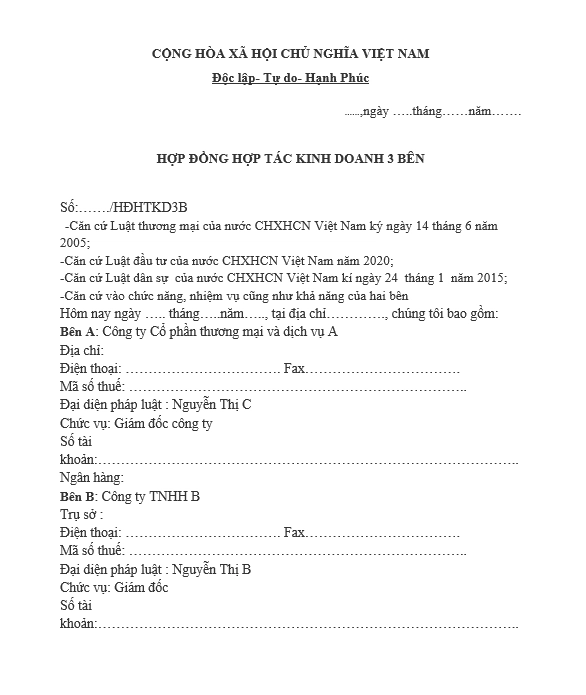 Tải xuống: Mẫu hợp đồng hợp tác kinh doanh giữa 3 bên