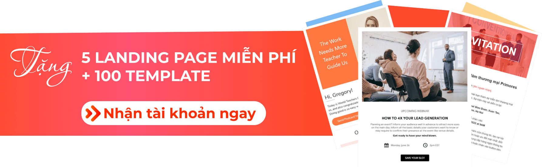 • Thiết kế landing page nhanh chóng: Thao tác kéo – thả dễ dàng; sẵn kho giao diện đa dạng mẫu, phù hợp với nhiều lĩnh vực với hơn 100+ template