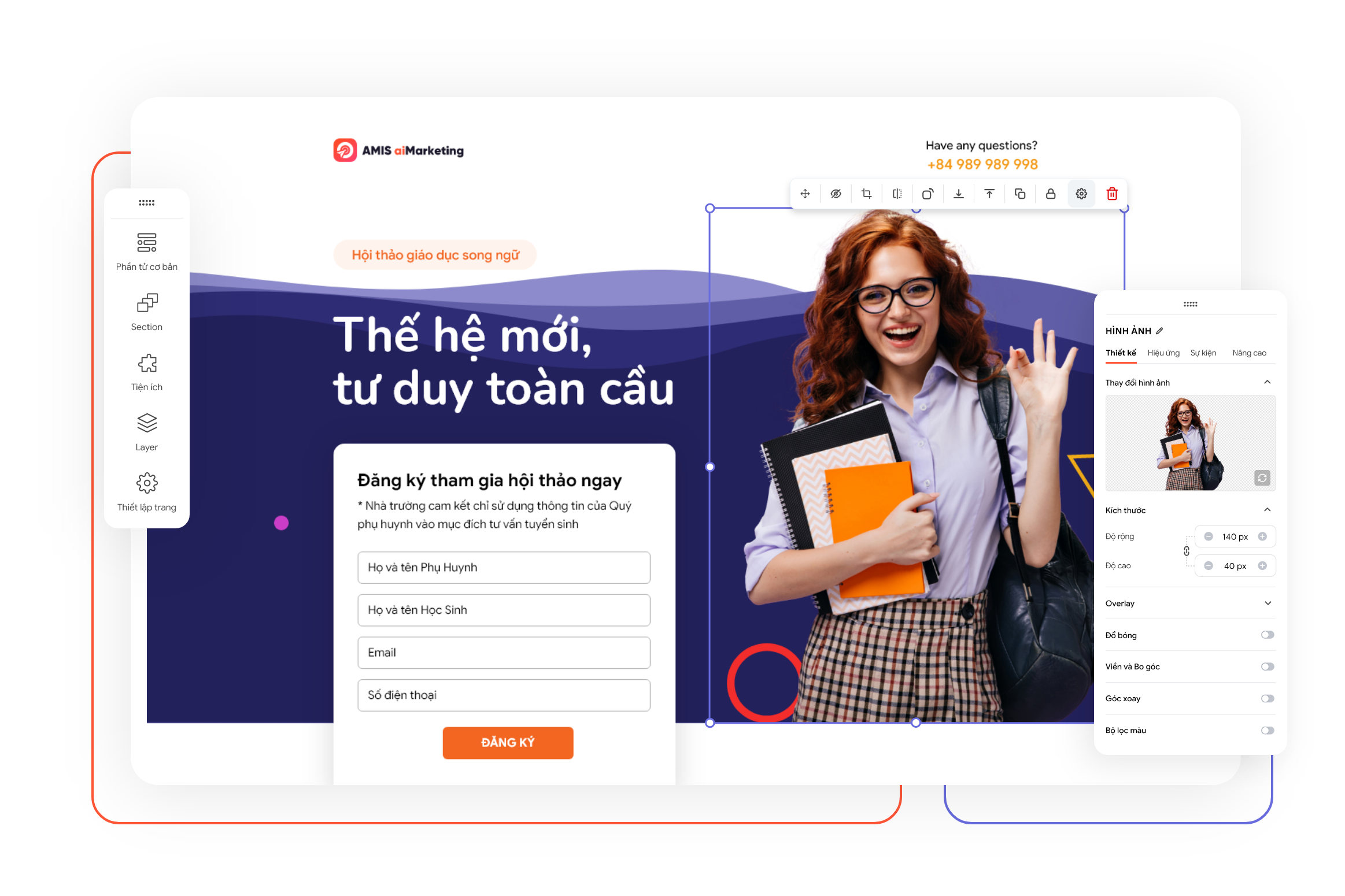 Nếu bạn còn băn khoăn không biết xây dựng bố cục landing page hiệu quả, có thể sử dụng phần mềm hỗ trợ AMIS aiMarketing tạo landing page ngay bây giờ: