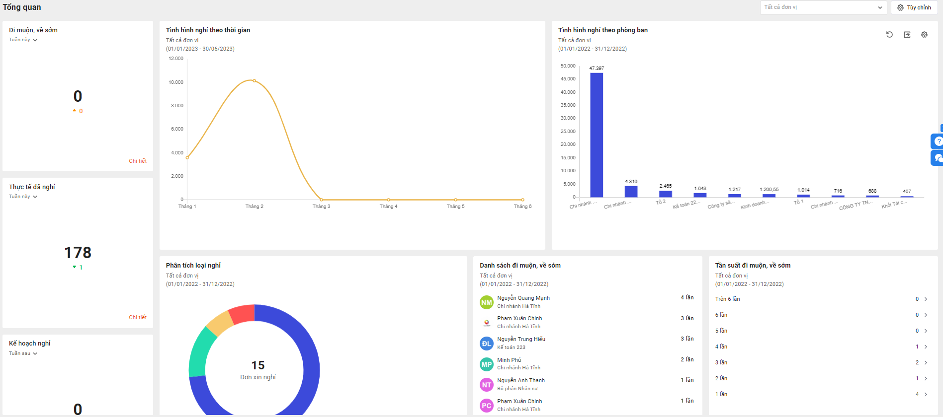 - Quản lý nghỉ phép, đi muộn, về sớm