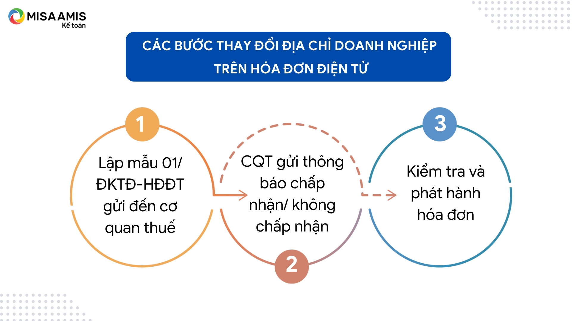 - Sau khi nhận được thông báo từ cơ quan thuế, doanh nghiệp tiến hành kiểm tra thông tin địa chỉ mới và thực hiện phát hành hóa đơn điện tử với địa chỉ đã cập nhật.
