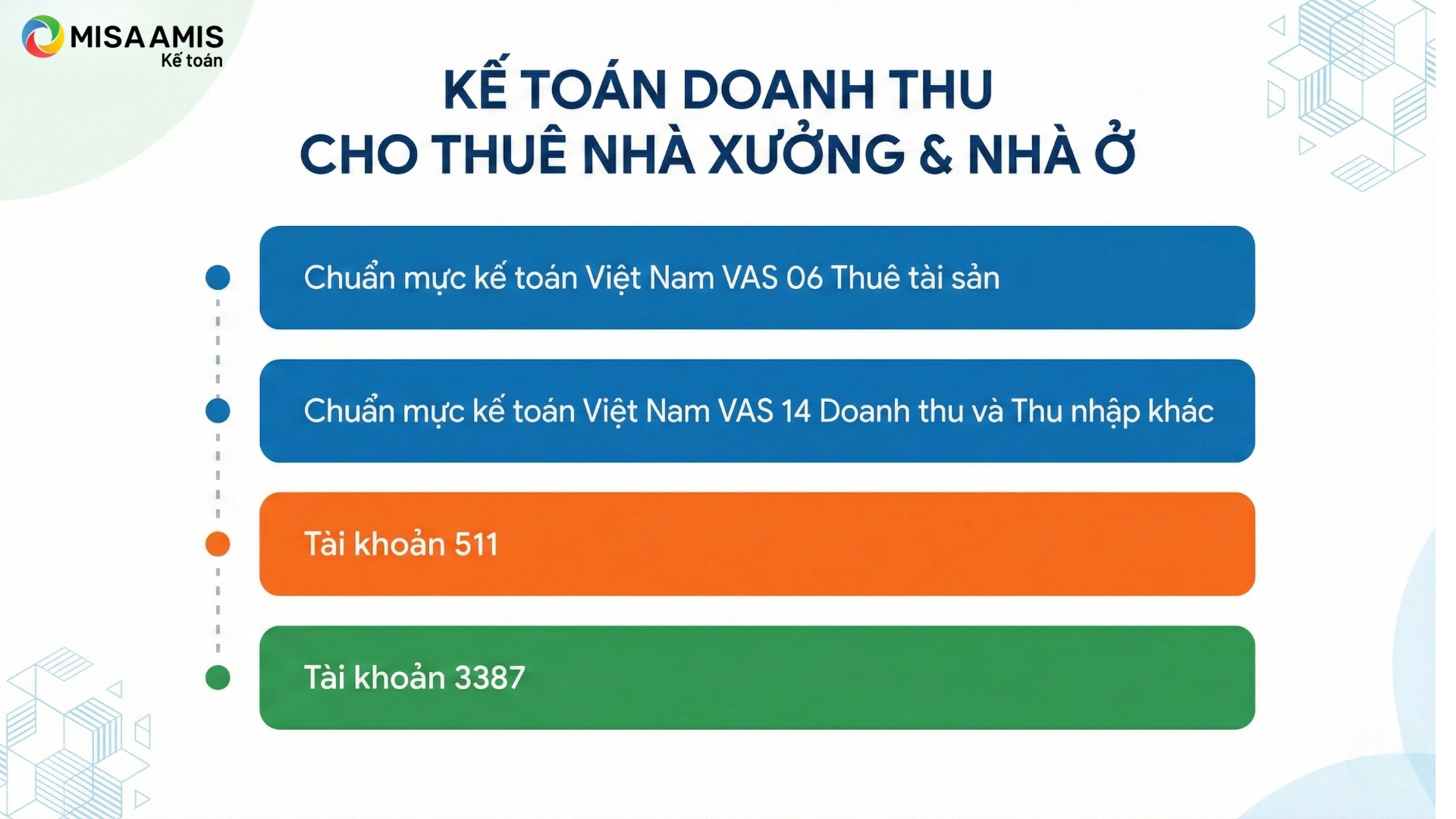 Như vậy, MISA AMIS đã giúp các bạn kế toán nắm rõ các nội dung liên quan đến hạch toán doanh thu cho thuê nhà xưởng và nhà theo các quy định và hướng dẫn trong Chuẩn mực Kế toán Việt Nam và Chế độ kế toán hiện hành đồng thời chỉ rõ những lưu ý về hóa đơn và kê khai thuế.