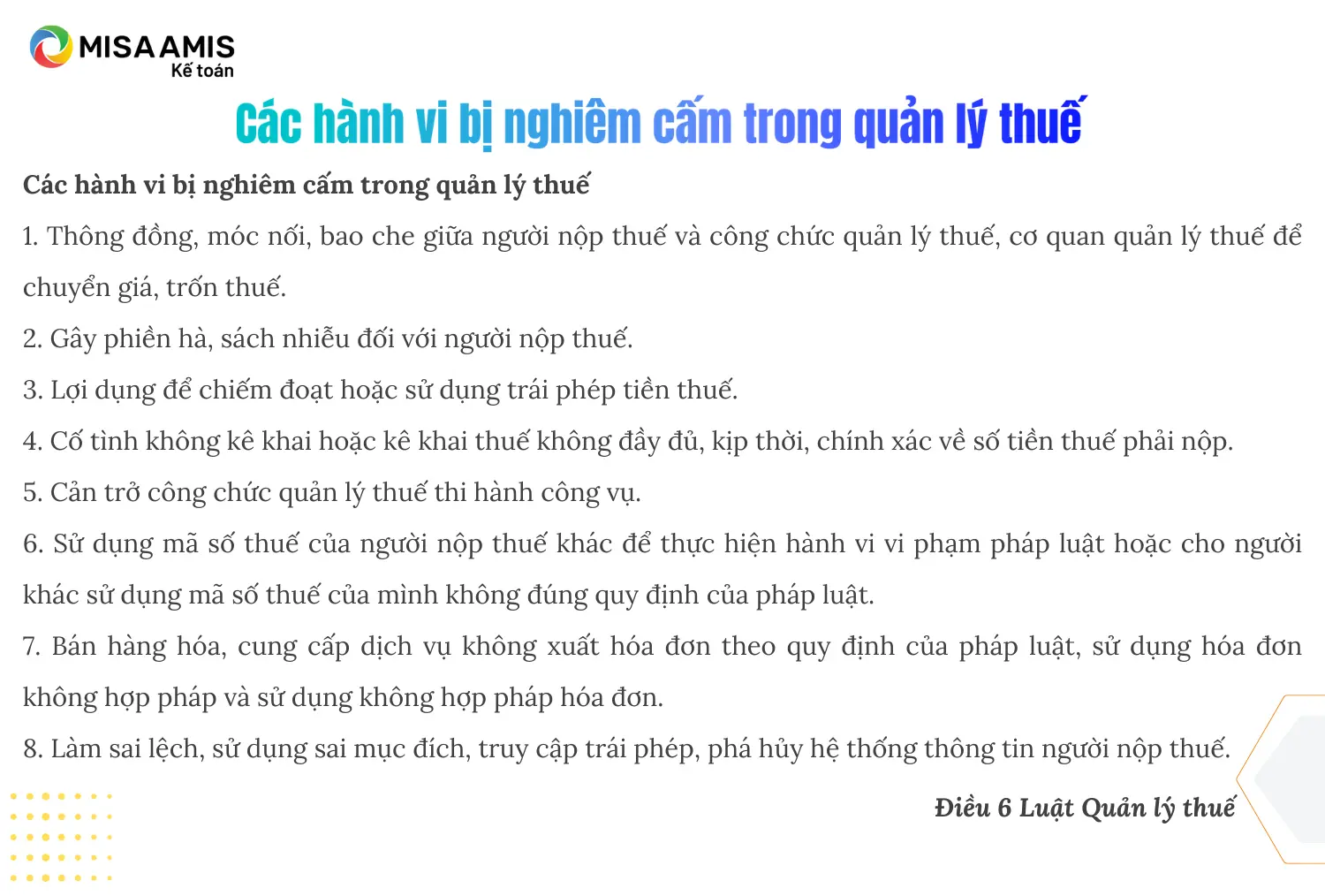 Hành vi bị cấm trong quản lý thuế