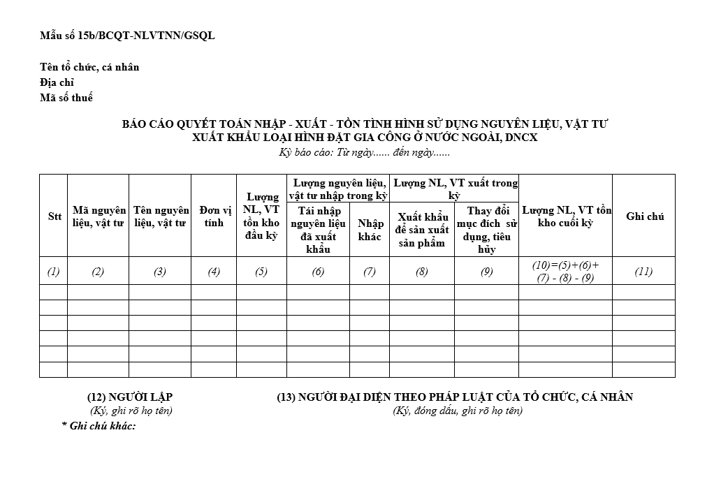Tải xuống mẫu số 15b/BCQT-NLVTNN/GSQL tại đây