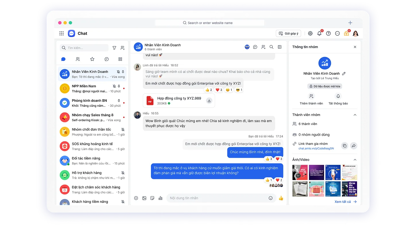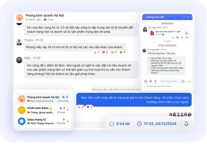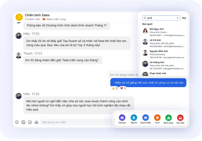Nhắn tin, gọi điện, chia sẻ tài liệu, tương tác, … giữa các nhóm, đơn vị & phòng ban nhanh chóng và hiệu quả.