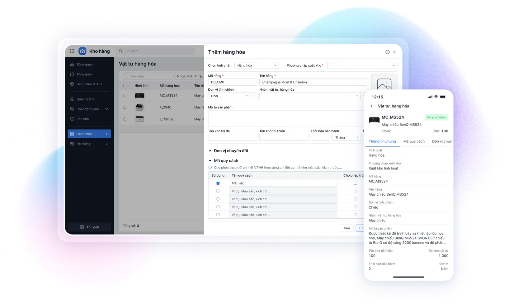 Theo dõi hàng hóa theo nhiều đơn vị tính, quy cách đóng gói