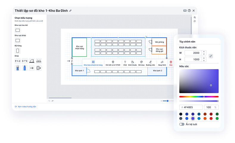 Giao diện trực quan theo sơ đồ kho thực tế