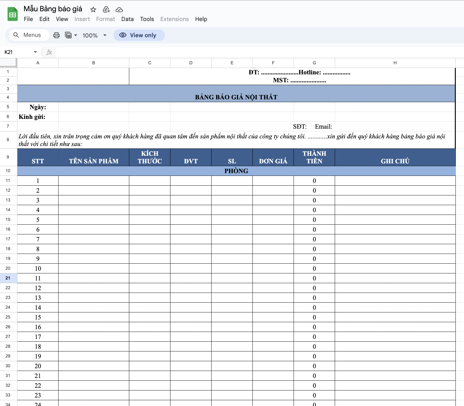 - Mẫu quản lý tồn kho, vật tư, hàng hóa, nguyên vật liệu