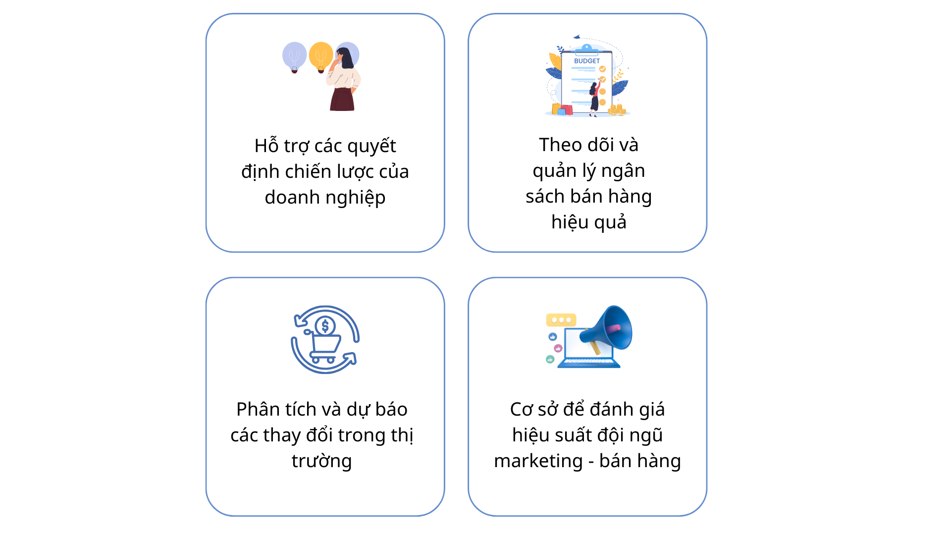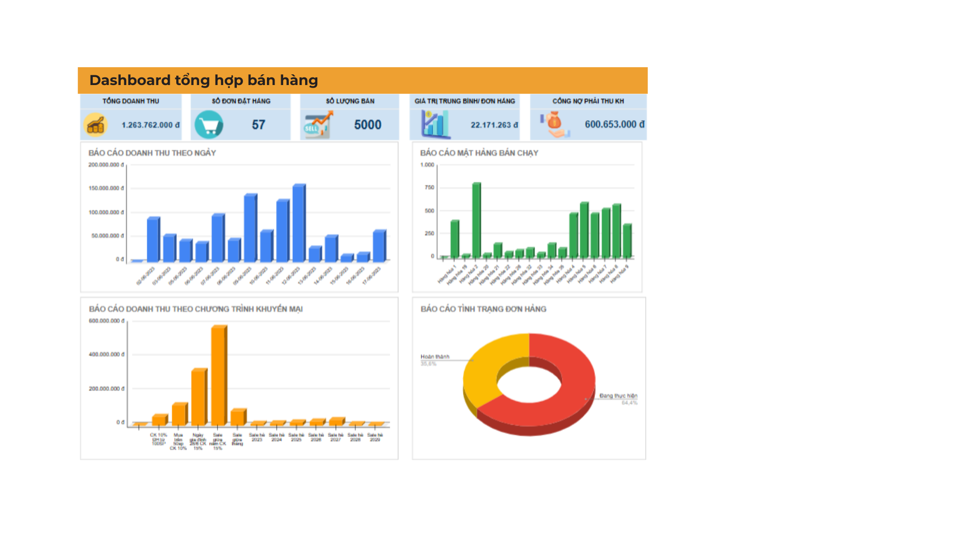 - Hệ thống báo cáo kinh doanh đa chiều, linh hoạt