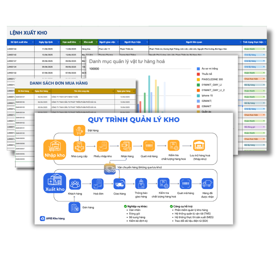 - Báo cáo toàn diện và Trợ lý AI hỗ trợ thủ kho trong phân tích, nhập liệu