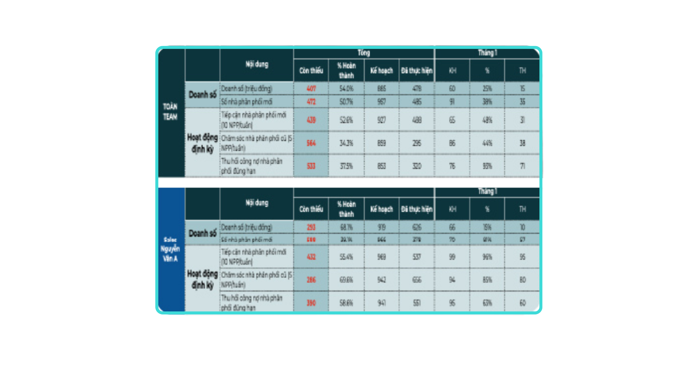 - Hiệu suất KPI, báo cáo checklist công việc đi thị trường