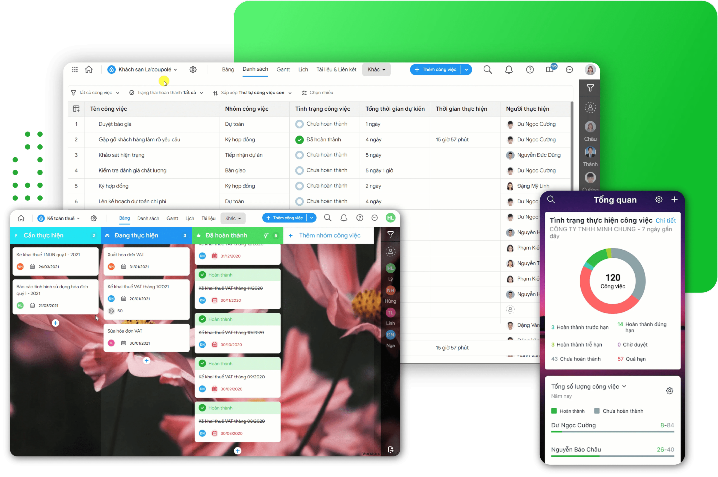 - Dễ dàng theo dõi/quản lý tổng quan/chi tiết từng dự án, từng công việc của phòng ban hoặc cá nhân nhân viên