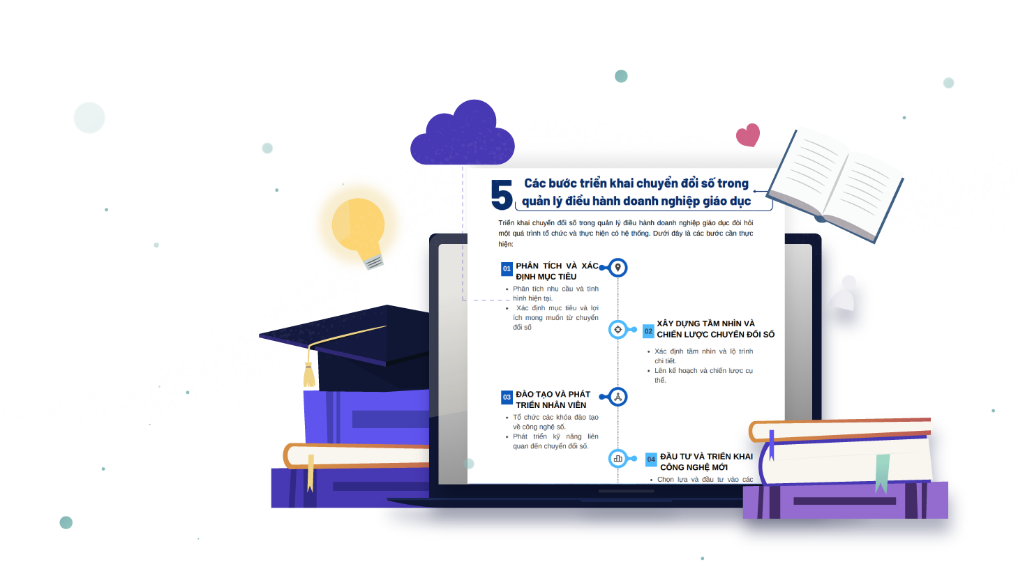 Cẩm nang hướng dẫn các đơn vị giáo dục, nhà trường thực hiện chuyển đổi số theo từng giai đoạn, quy mô với giải pháp phù hợp.