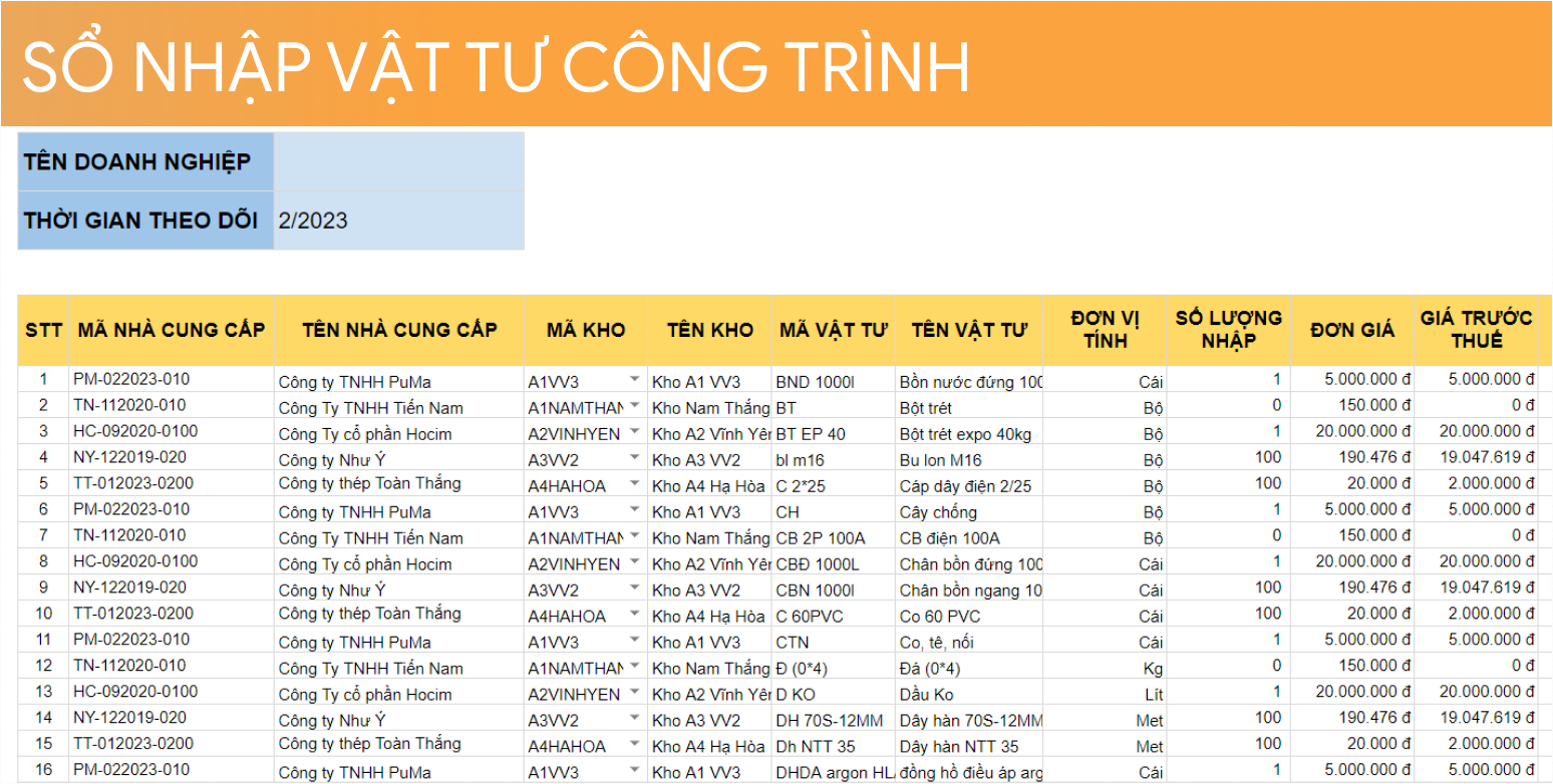 10+ MẪU EXCEL THEO DÕI VẬT TƯ CÔNG TRÌNH