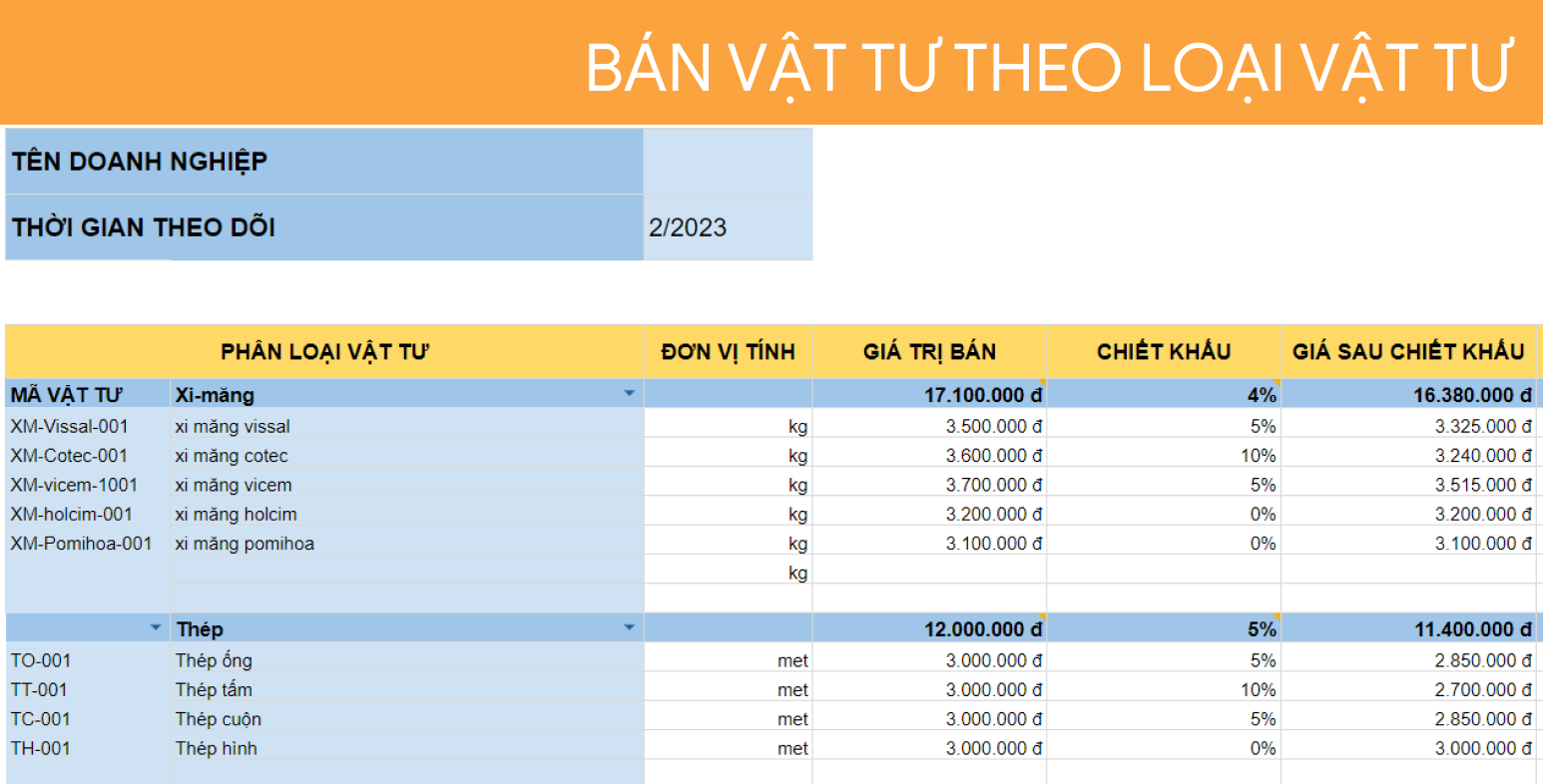 MẪU QUẢN LÝ BÁN HÀNG VẬT TƯ CÔNG TRÌNH