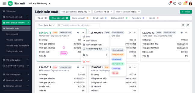 Xếp lịch sản xuất linh hoạt và giám sát tiến độ