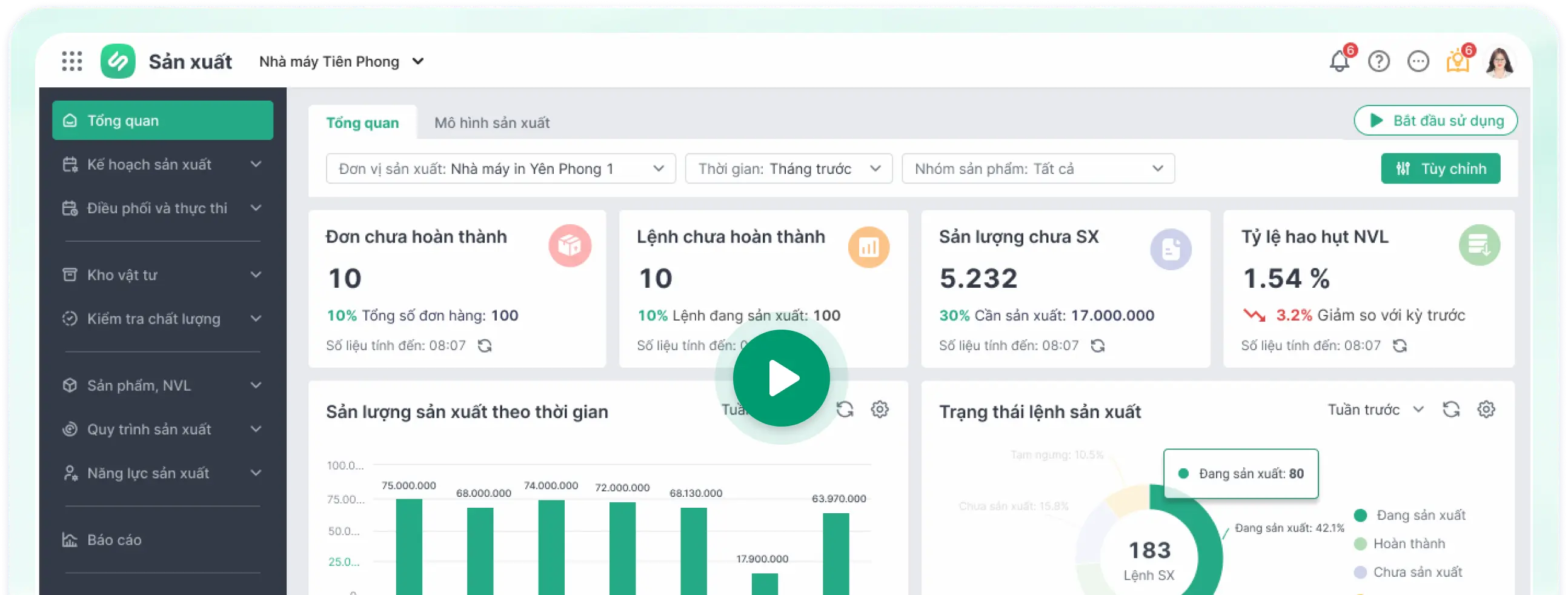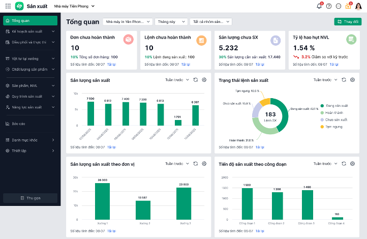 - Cung cấp đa dạng biểu đồ, báo cáo trực quan và chi tiết về toàn bộ hoạt động, tiến độ sản xuất