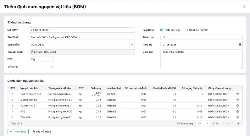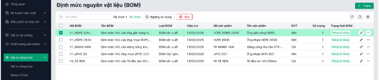 - Dễ dàng truy vết và quản lý các thay đổi định mức nguyên vật liệu