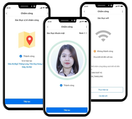 Ghi nhận chính xác thời gian check-in, check-out khi thiết bị của nhân viên truy cập hệ thống Wifi nội bộ của doanh nghiệp.