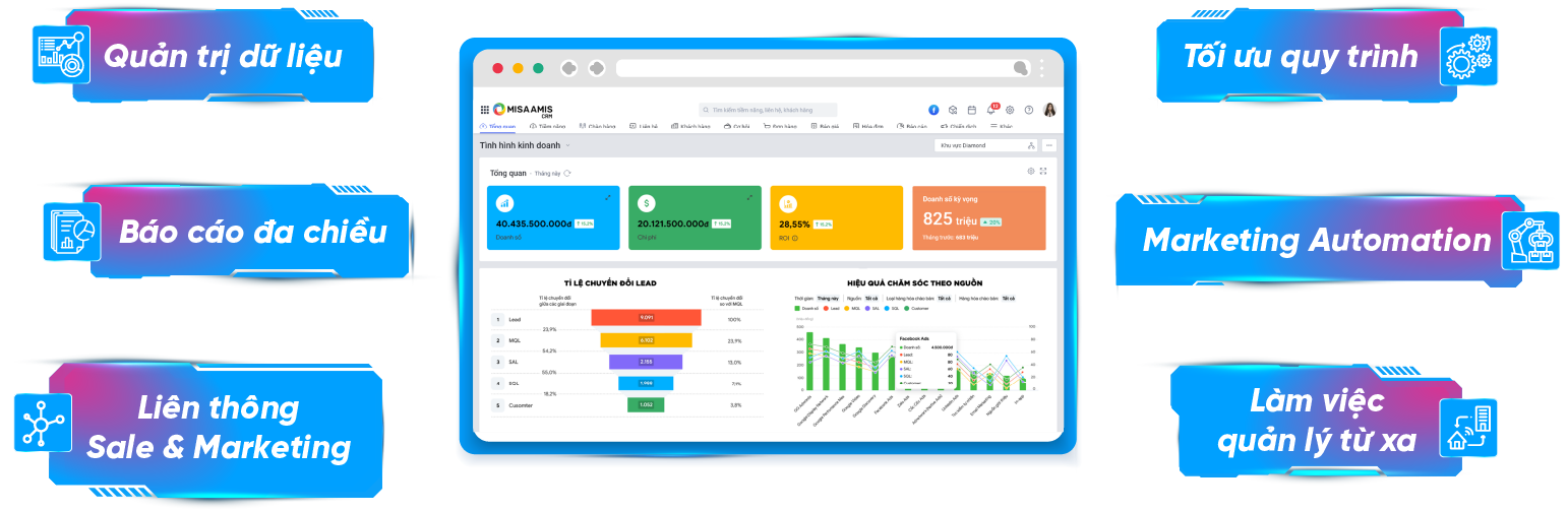 Bộ giải pháp CRM toàn diện đáp ứng đầy đủ nhu cầu Marketing - Bán hàng - Chăm sóc khách hàng trên một nền tảng duy nhất, giúp doanh nghiệp nâng cao hiệu suất hoạt động kinh doanh, bán hàng mọi lúc mọi nơi.