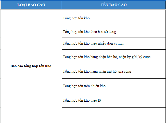 Báo cáo kho và sổ chi tiết đa lĩnh vực