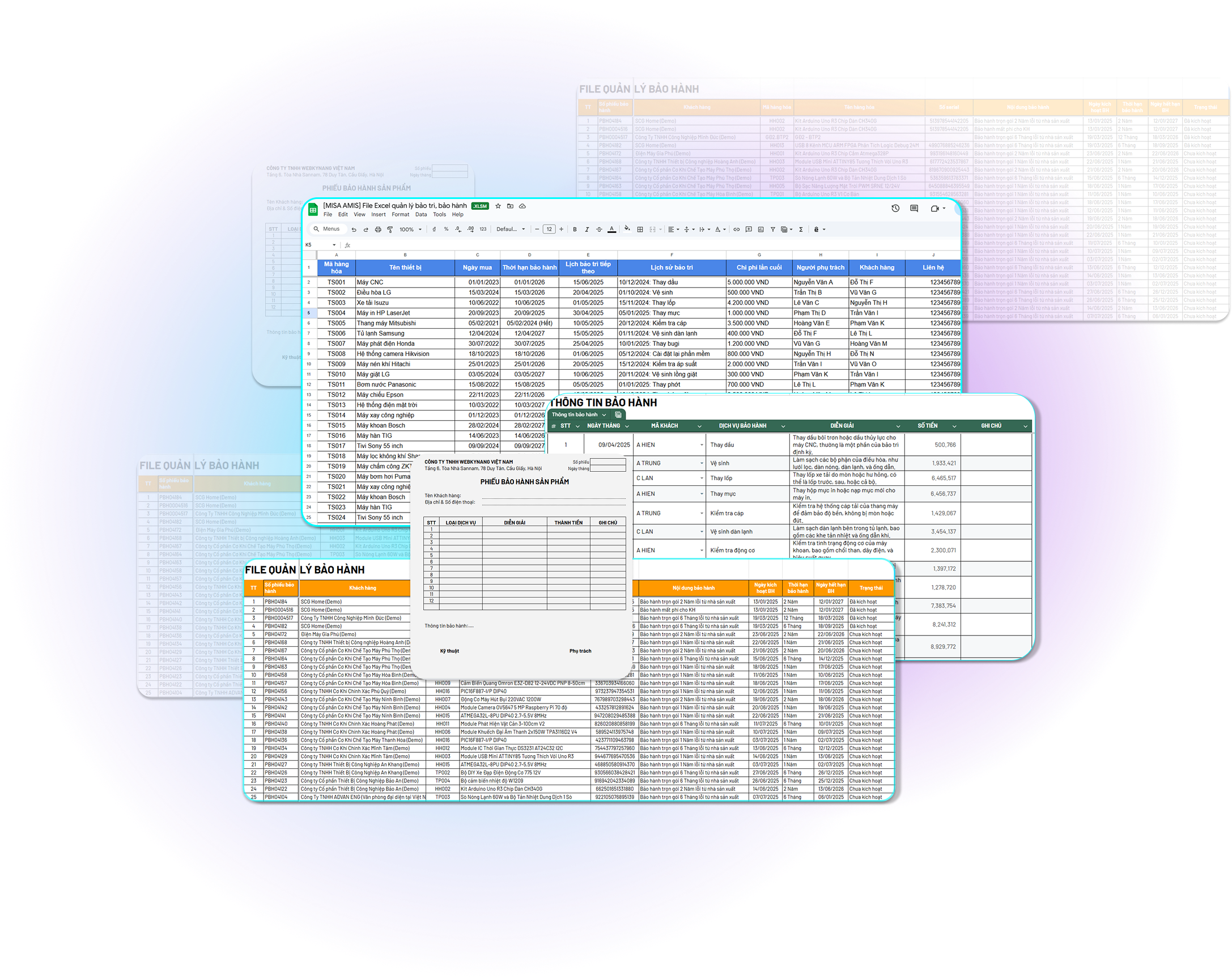 "File Excel này đỉnh! Quản lý bảo hành máy móc công nghiệp cho các doanh nghiệp không sợ sót thông tin. Lịch sử sửa chữa giúp tư vấn khách tốt hơn!"