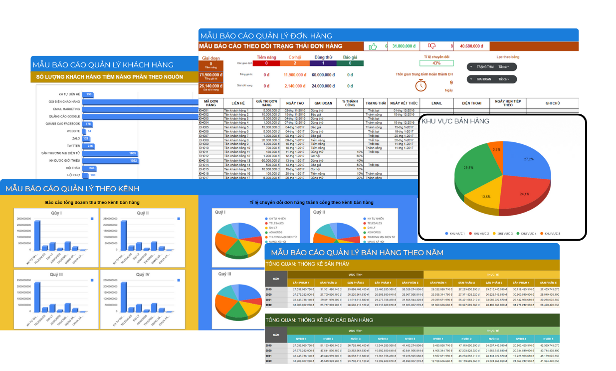 Dashboard theo dõi doanh số, tỷ lệ chuyển đổi, hiệu suất
