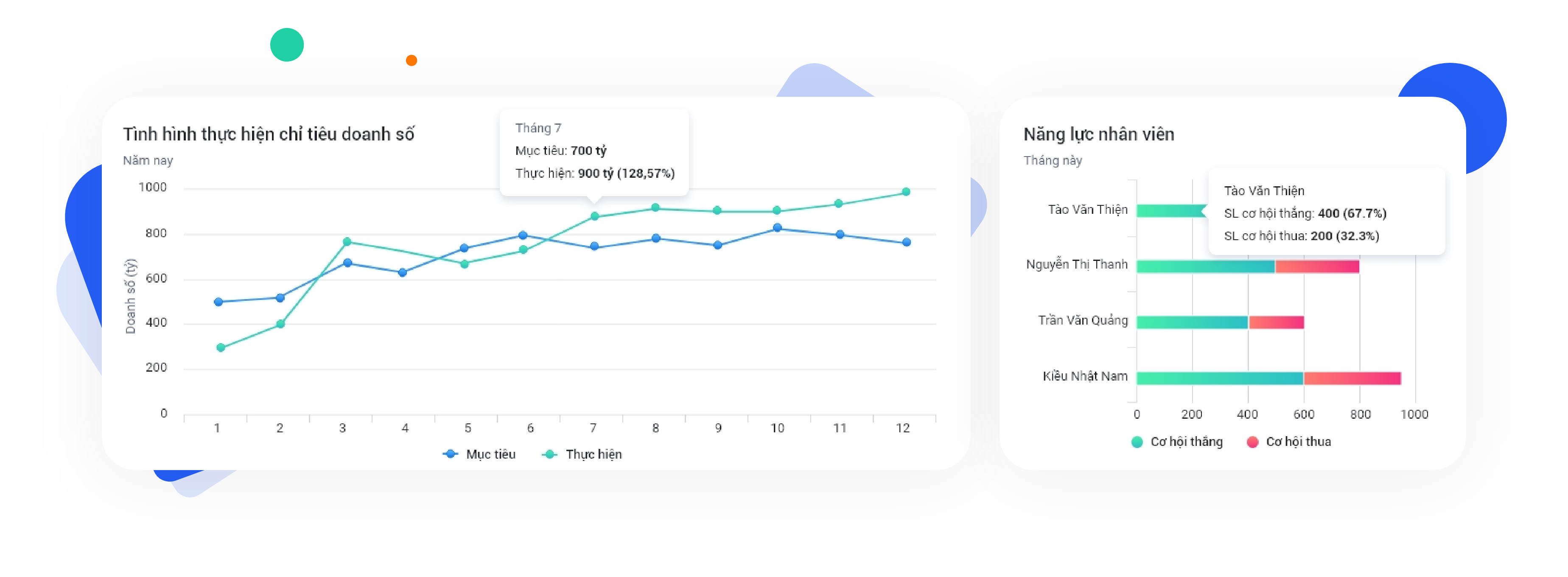 - Báo cáo năng suất, tình hình thực hiện mục tiêu của từng phòng ban/cá nhân