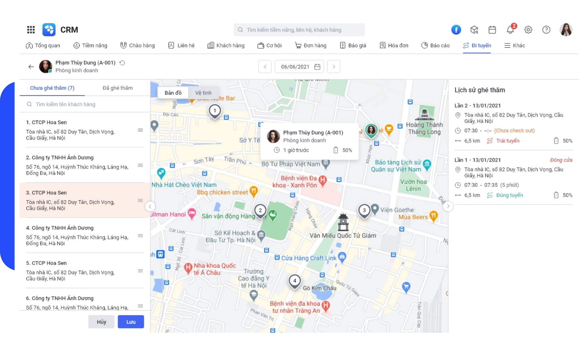 - Báo cáo hiệu quả đi tuyến: Số khách hàng ghé thăm, đơn hàng, doanh số