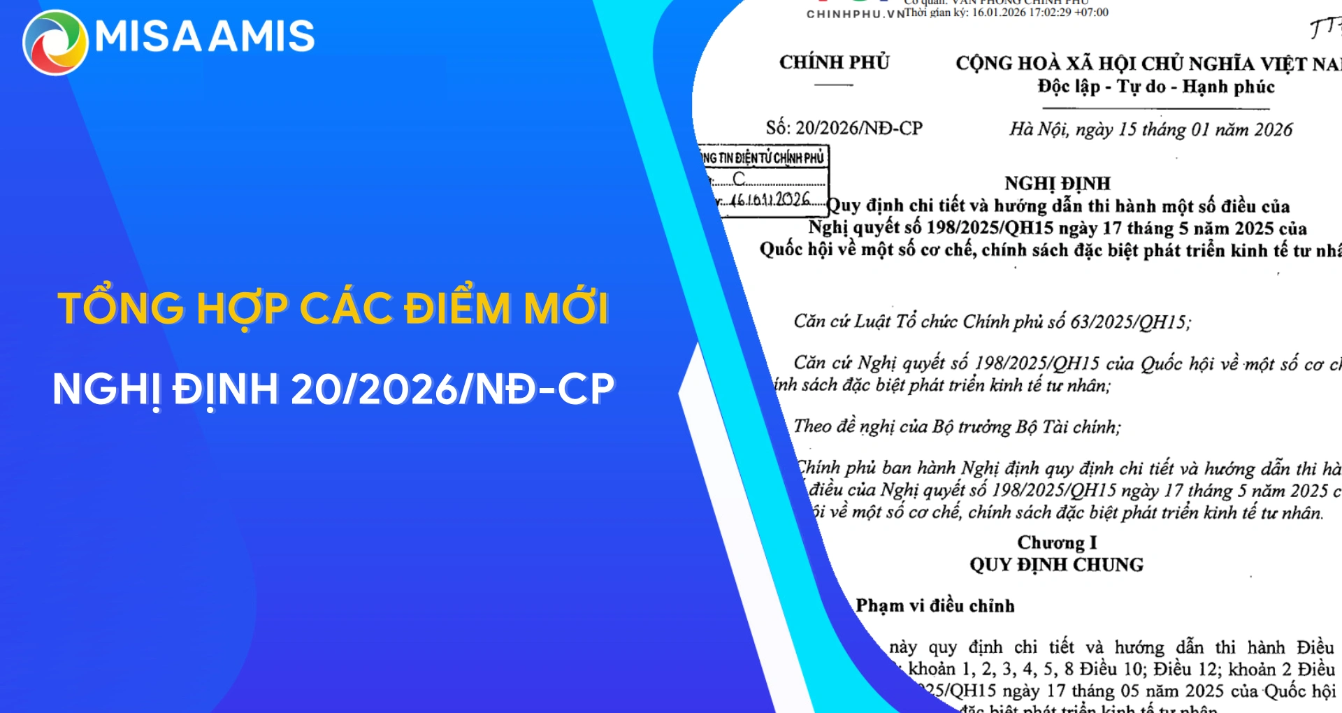 Ngày 31/12/2025, Chính phủ đã ban hành Nghị định 359/2025/NĐ-CP sửa đổi, bổ sung một số điều của Nghị định 181/2025/NĐ-CP, và Nghị định này sẽ chính thức có hiệu lực từ ngày 01/01/2026. Trong bài viết dưới đây, MISA AMIS tổng hợp những điểm mới đáng chú ý của Nghị định 359/2025/NĐ-CP sửa đổi, […]